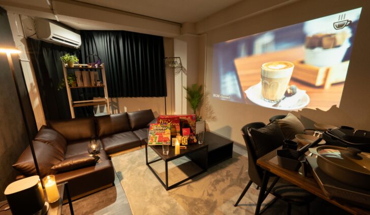 巨大プロジェクターで映画鑑賞やデート・推し活に!ボードゲームも多数用意!同窓会や打ち上げ、パーティーも楽しめる!思い出のあのシーンをみんなで楽しもう!