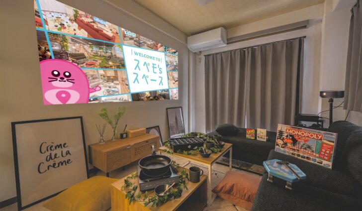 大画面プロジェクターでオフサイトミーティング、映画鑑賞やゲーム大会、キッチンを使ってたこ焼き器やフォンデュ鍋のお家デートにも!