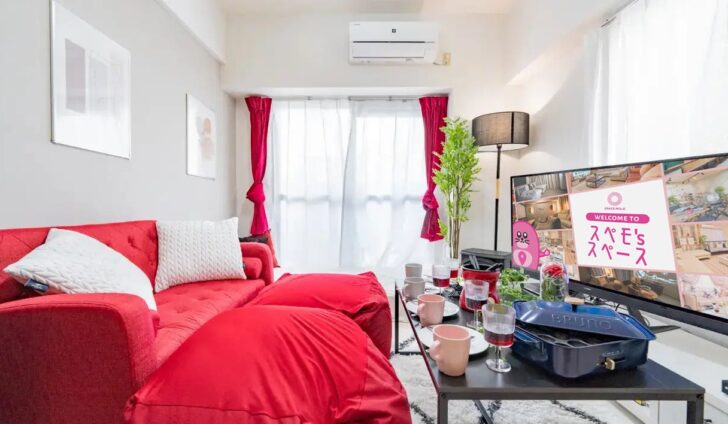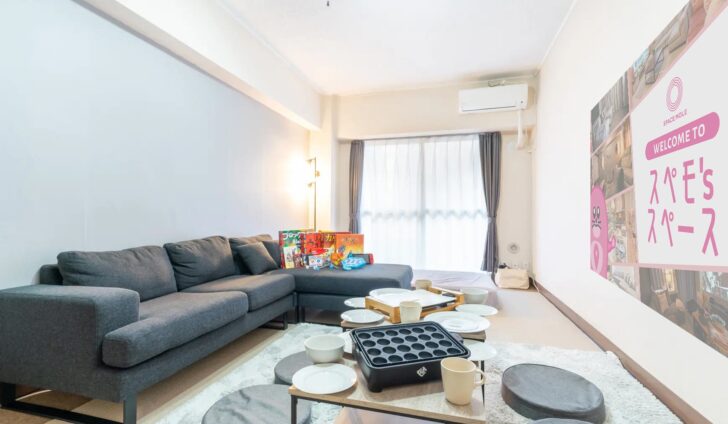 五条駅徒歩3分のスペモリビング京都五条2nd!清潔でおしゃれなリビング空間を貸切でき、パーティー、女子会、会議、推し活など多用途に利用可能!