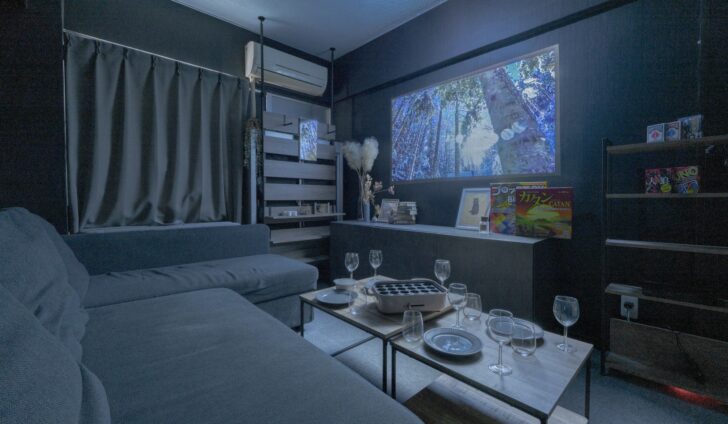 プロジェクターや定番ボードゲームで推しやドラマ・映画鑑賞にボドゲ大会もできる!