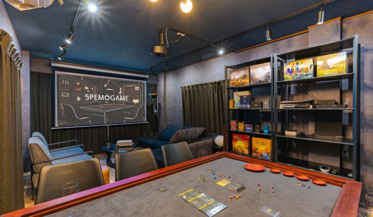 大迫力の100インチプロジェクター完備!映画鑑賞やスポーツ観戦も楽しめるスペモゲームの魅力。高級感溢れるスペモゲーム新宿御苑前で、ご友人やお仲間とボードゲームや料理会で特別な時間を過ごしてみませんか。