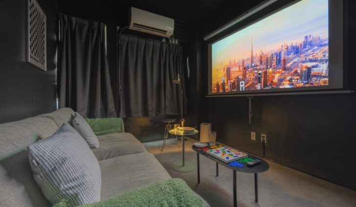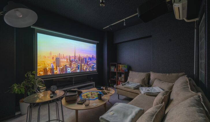 100インチスクリーンでゆったり映画鑑賞からゲームまで!お家デートや飲み会・推し活も!プライベートな空間で始発待ちや空き時間に!