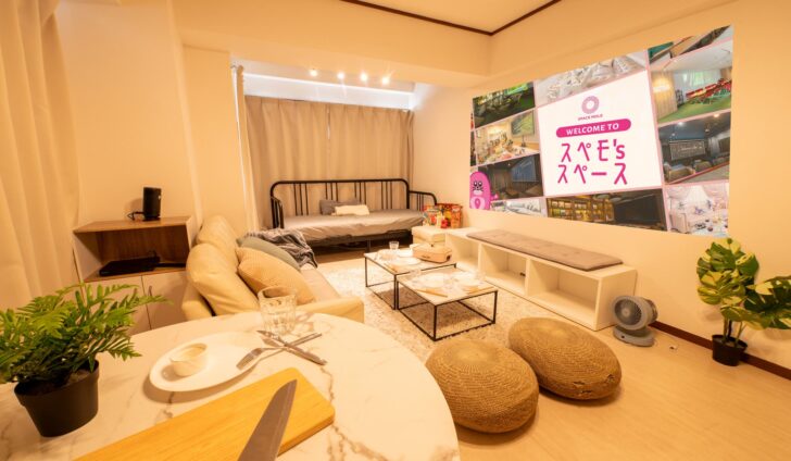 巨大なプロジェクターあり!キッチンあり!スペモリビング新橋が登場!女子会・ママ会・打ち上げにも!