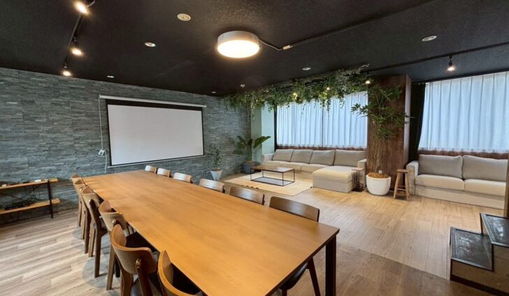 プロジェクター鑑賞、たこパや鍋会、映画鑑賞・大人気ゲーム機・推し活、リモートワークやオフサイトミーティングなど多彩に利用できるボタニカルスペース!