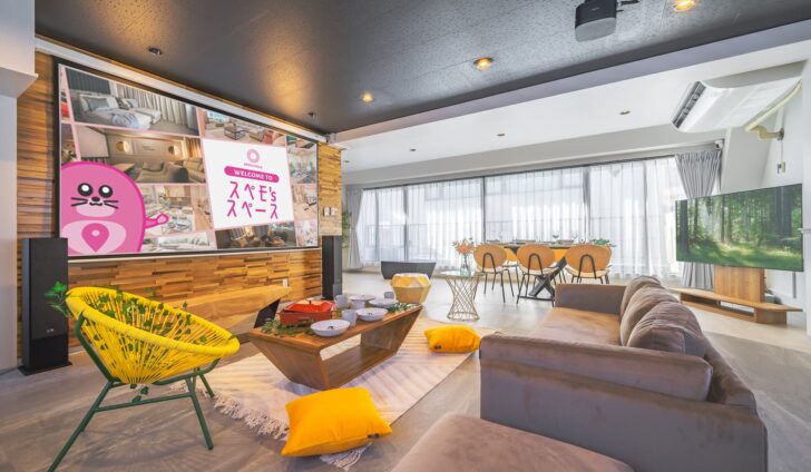 プロジェクターあり!友達ん家みたいにくつろげる、スペモリビング大阪難波2ndはゆったりオシャレな空間はここ!