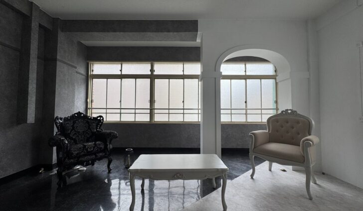 「白×黒」のモノトーン、2面採光の欲張りなお部屋!物撮り、ポートレートに、コスプレや本人不在の誕生日会も!豪華な家具で異世界空間!一日中採光に恵まれて、24時間営業です!