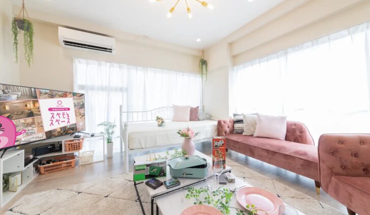 美しいキッチン完備で、ホームパーティーや女子会にぴったり! リラックスできるソファでくつろぎながら、ゆったりとした時間を楽しめます!