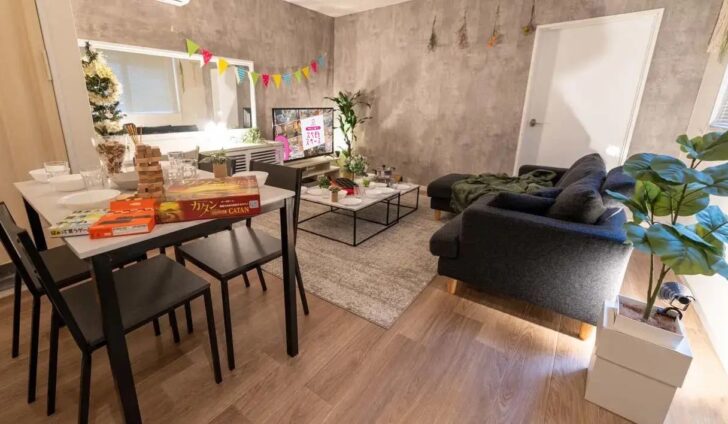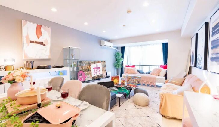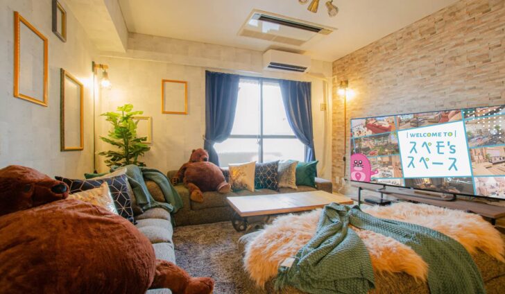 リニューアルで使いやすさ向上!ポップインアラジンとAladdin MIC(カラオケ)を新規導入。カウチソファとプロジェクターのメインとサブリビングに分かれ、女性や大人数での利用、撮影に最適です。