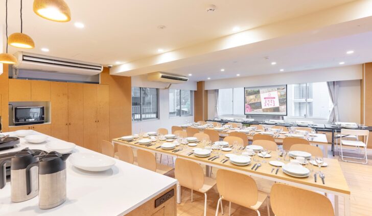 麹町駅徒歩3分・半蔵門駅徒歩2分。アクセス抜群で、キッチン設備完備の多目的レンタルスペース。清潔感と機能性を備えつつ、交流や懇親の場としても使いやすい空間!
