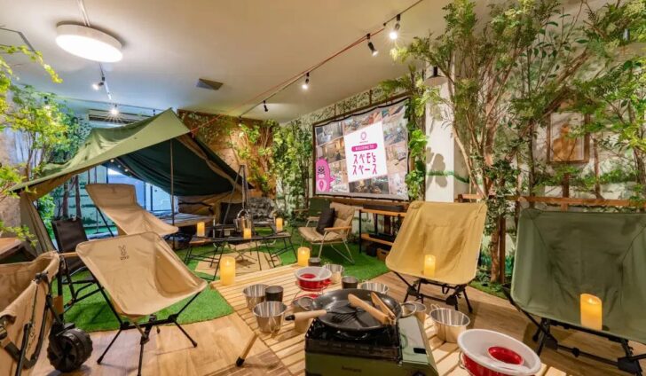 高級キャンプ用品ブランド"Snowpeak"のテーブルやチェア、ウッドデッキのテラスもあるので都内にいながらリッチなキャンプ体験ができちゃいます!!