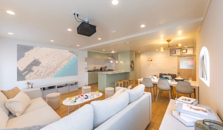恵比寿駅徒歩3分、カフェに囲まれたおしゃれ空間。高性能プロジェクター「popIn Aladdin 2 Plus」を導入し、最強の映像体験を提供。ホームパーティー、ママ会、推し活に最適です。