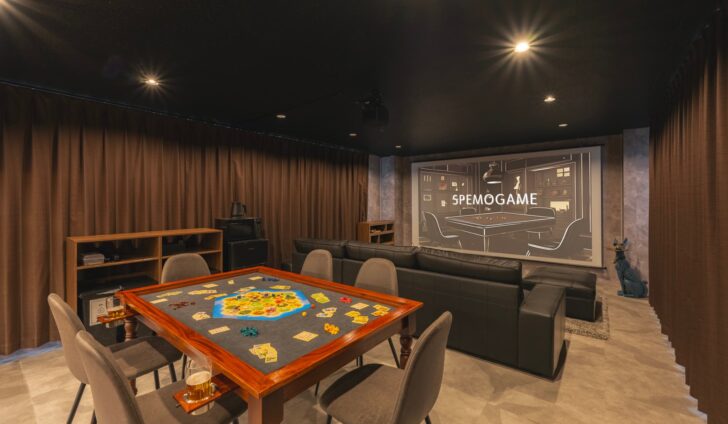 スペモゲーム押上では最新の人気ゲームから定番のボードゲームまで取り揃え!巨大スクリーンでボドゲだけではなく映画鑑賞も!
