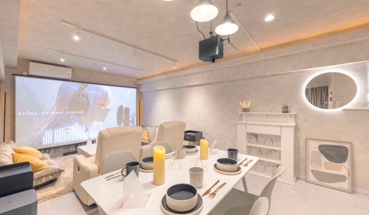 新宿エリアにNEW OPEN!映画と料理が楽しめるシネマスペース!100型プロジェクター、調理器具充実!推し活/パーティーに最適!シネマ新宿御苑前
