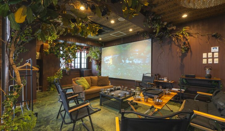 映画鑑賞とピクニックを同時に!?プロジェクター付きのキャンプシリーズで室内BBQ体験!