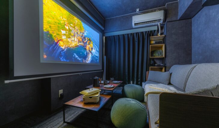 映画鑑賞と推し活を大画面で!デートにぴったりのプロジェクタールーム!