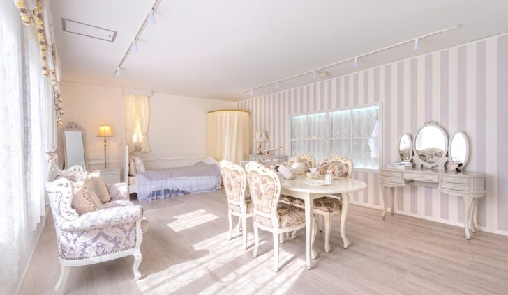 ペットOK・ブラウン×白基調のフレンチロココ家具完備の甘すぎない可愛さがあるスペース!かわいいのに甘すぎない落ち着いた雰囲気のフレンチロココ空間です!