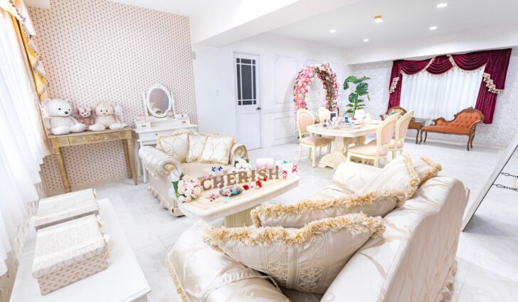 ペットOK・パステルカラーのチュールカーテンに囲まれた、ゆめかわいい非日常空間が楽しめるスペース!撮影はもちろん女子会にも