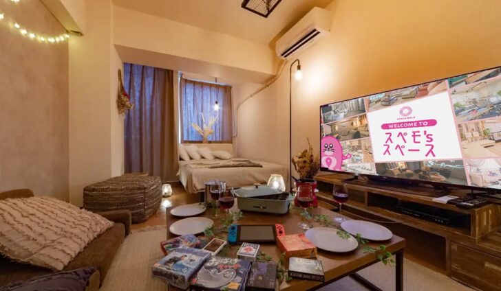 プロジェクター鑑賞、たこパや鍋会、映画鑑賞・大人気ゲーム機・推し活、リモートワークやオフサイトミーティングなど多彩に利用できるボタニカルスペース!