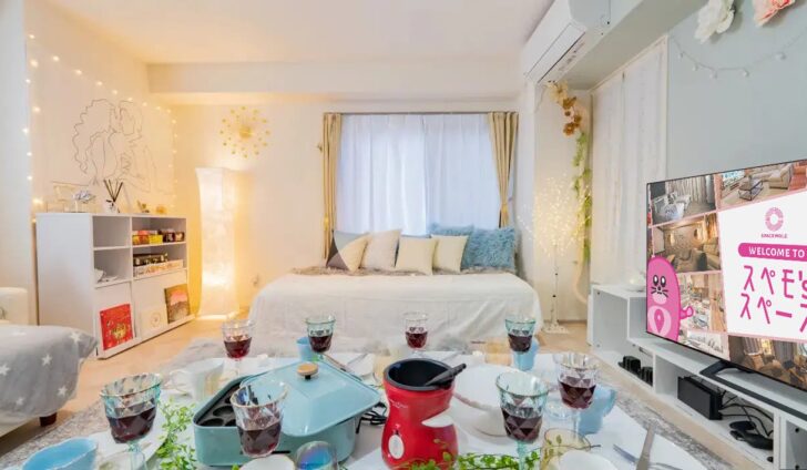 大人数仕様だから気の合う仲間と盛り上がるスペモシネマパーティ!プロジェクターで映画や推しの鑑賞会や生誕祭、スポーツ観戦にもピッタリの空間!