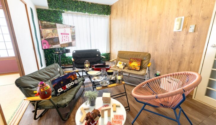 CAMPスペース・撮影スタジオ・和室・キッズスペース・完備の3LDKの間取りを存分にいかした広々スペース!プロジェクターでの映画鑑賞やBBQも!
