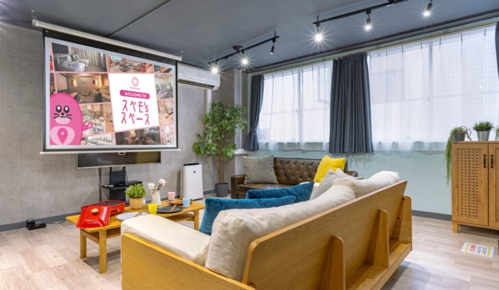 大画面プロジェクターでオフサイトミーティング、映画鑑賞やゲーム大会、キッチンを使ってたこ焼き器やフォンデュ鍋のお家デートにも!
