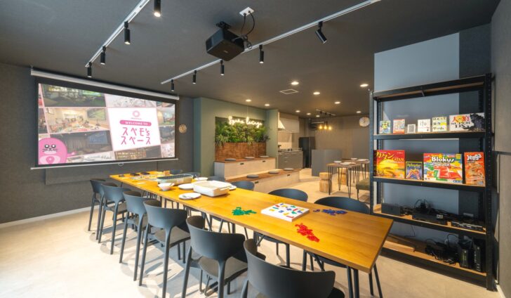 スペモゲーム押上では最新の人気ゲームから定番のボードゲームまで取り揃え!巨大スクリーンでボドゲだけではなく映画鑑賞も!