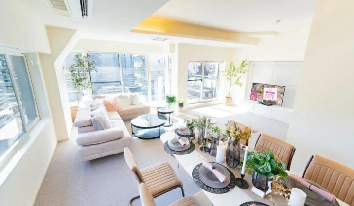 五条駅徒歩3分のスペモリビング京都五条2nd!清潔でおしゃれなリビング空間を貸切でき、パーティー、女子会、会議、推し活など多用途に利用可能!