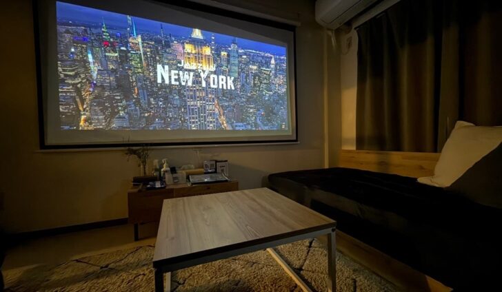 100インチスクリーンでゆったり映画鑑賞からゲームまで!お家デートや飲み会・推し活も!プライベートな空間で始発待ちや空き時間に!