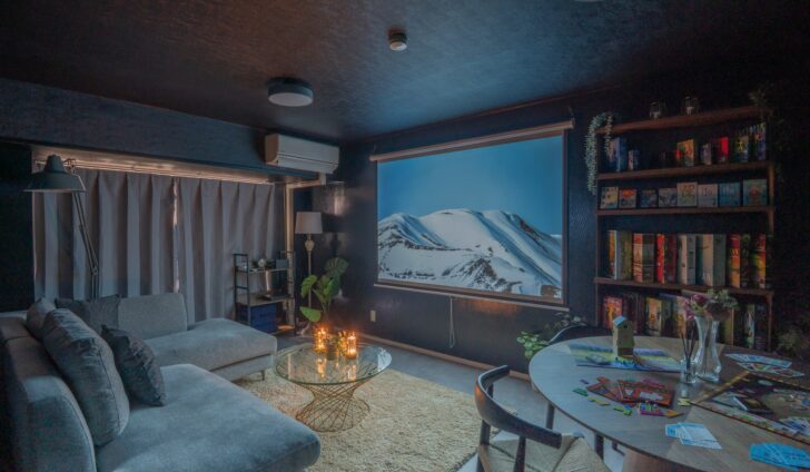 打ちっぱなしの壁にプロジェクター!映画鑑賞や推し活、ゲームもできるシアタールームでおしゃれデートにも!