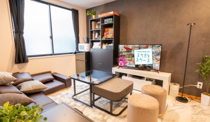 プロジェクターや定番ボードゲームで推しやドラマ・映画鑑賞にボドゲ大会もできる!